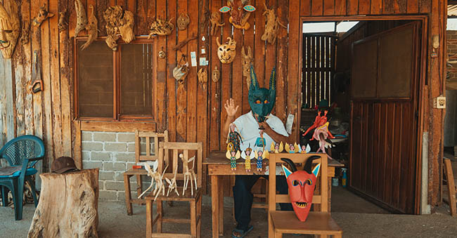 He began carving wood at the age of 14. His first pieces were armadillos, and among the figures, Christopher Columbus and his ship stand out.