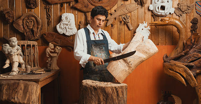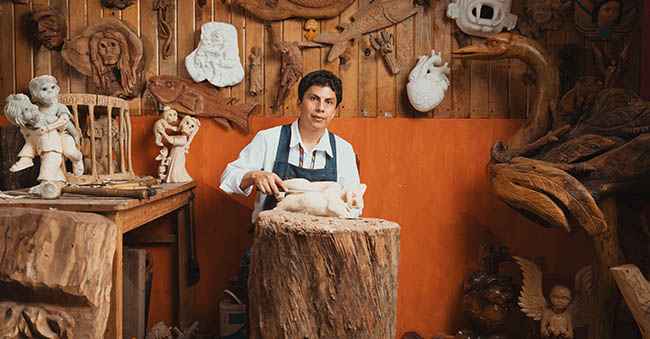 Efraín forma parte de la tercera generación de talladores de madera. Comenzó a tallar a los 7 años bajo la supervisión de su padre, Epifanio Fuentes, quien aprendió de él.